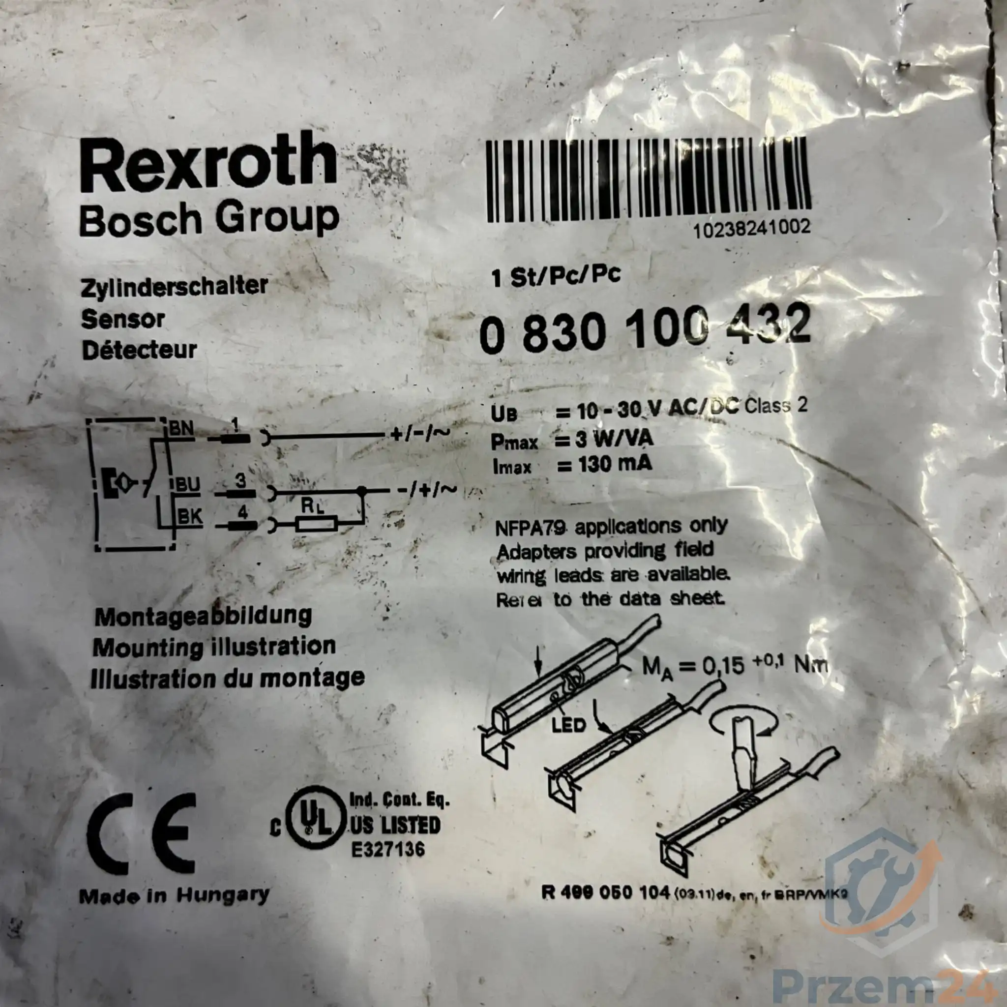 Rexroth 0 830 100 432 / 0830100432 Czujnik 1030 V DC 130 mA